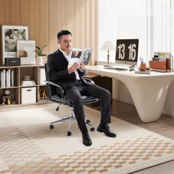 Modern Ergonomic Leather Office Chair with Reclining Backrest & Footrest