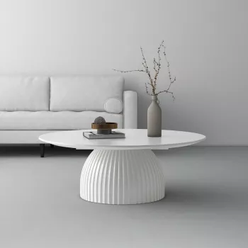 Modern Round Coffee Table, 35.4 Inch White Drum Design