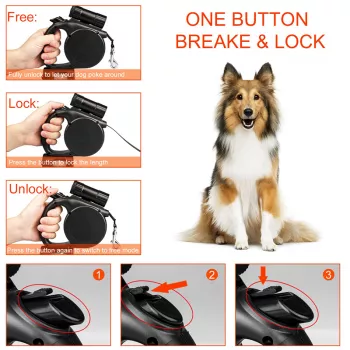 Retractable Dog Leash with Flashlight & Poop Bag Holder